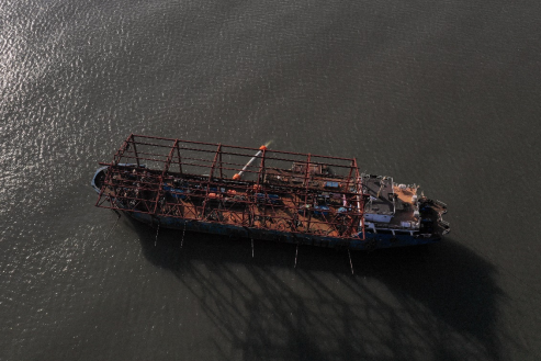 图1 人工水下沙坝施工船只