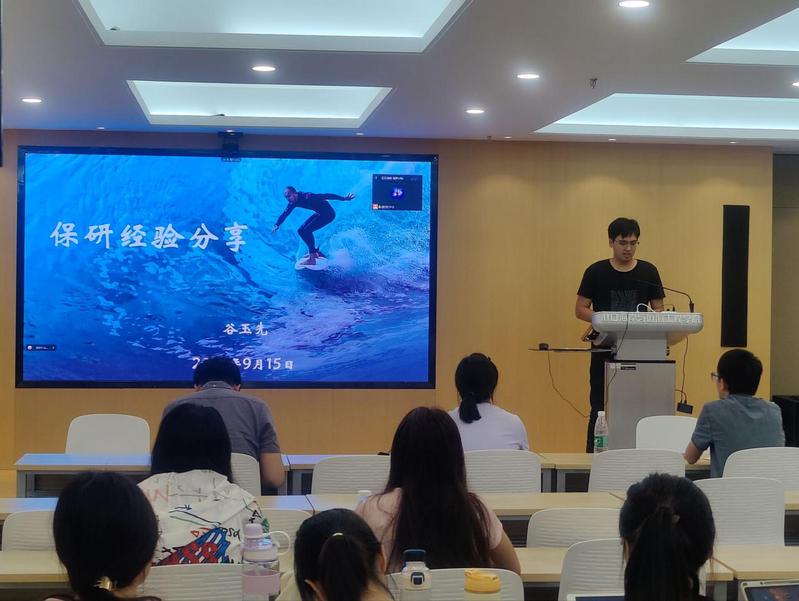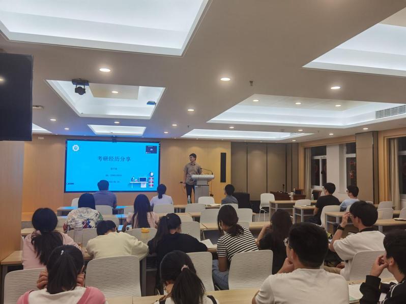 姚鹏老师简略介绍了19级的就业、考研概况。接下来三位研究生就保研经验、考研择校、备考准备、心态调整、复试经验等几个方向为同学们进行分享。