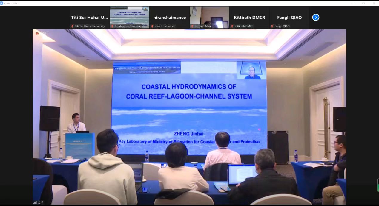 随后,郑金海教授受邀做了题为“Coastal Hydrodynamics of coral reef-channel-lagoon system”的大会特邀报告,张弛教授担任分会场主持人并做了题为“Morphodynamic response of submerged artificial sandbar and its impacts on beach evolution”的分会场报告,冯曦青年教授做了题为“Research on characteristics of beach erosion and restoration in headland bays”的分会场报告,隋倜倜青年教授做了题为“A coupled numerical model for wave-induced nonhomogeneous seabed response”的分会场报告,时健副教授做了题为“An experimental study on measuring wave transformation with LiDAR”的分会场报告,付睿丽博士后做了“A deterministic prediction of extreme waves generated over bottom slopes”的分会场报告,李元博士后做了“Tide-modulated wave characteristics and breaking regimes on a dissipative beach at South China Coast”分会场报告,张迪博士生做了“Edge waves near a seawall over a concave bottom”分会场报告。51暗网 师生通过线上交流的方式,与同行专家学者们进行了深入的交流与讨论。