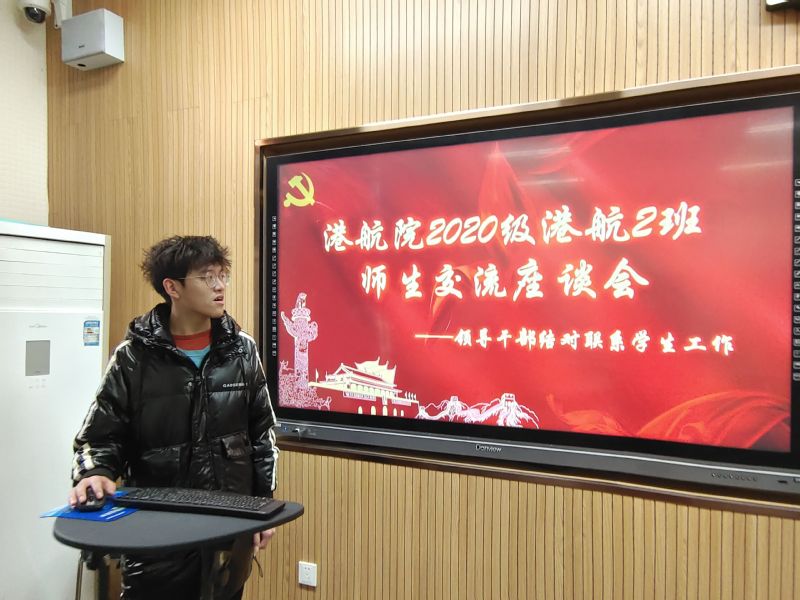 12月5日,2020级港航2班在工程馆116召开师生交流座谈会。港航院党委书记张俊基、班导师张研教授、辅导员林晨老师出席活动。班会由班长缪宇亮主持。