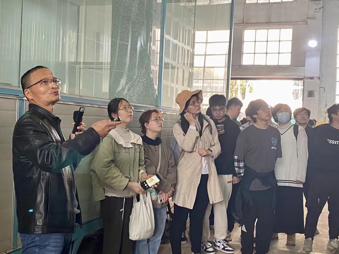 在泥砂基本理论试验实验厅,老师介绍了水槽的基本情况,讲解了泥沙输移方面的研究。老师围绕当前正在进行的浮式机场挡浪墙的试验,介绍了水槽模型布置,利用模型表面布置的波长传感器,为同学们现场演示了波浪作用在结构物表面的情况。