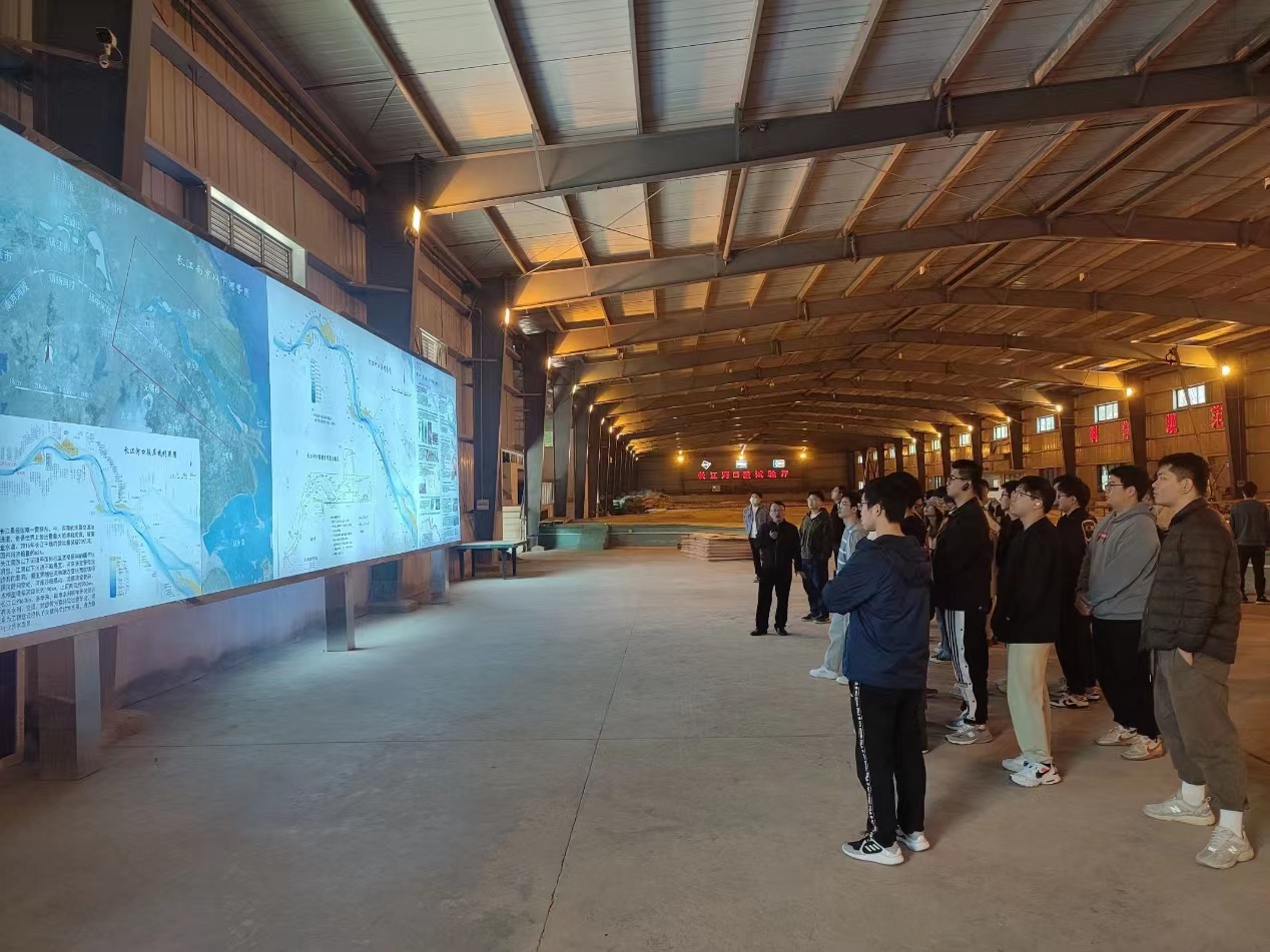 在长江下游试验厅,老师给同学们讲解了长江南京以下12.5米深水航道整治工程研究、沪通长江大桥模型实验研究等,了解了长江江苏段水动力及泥沙输移机理、河床演变及工程河势控制工程措施。