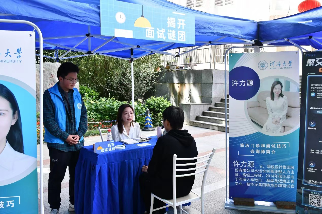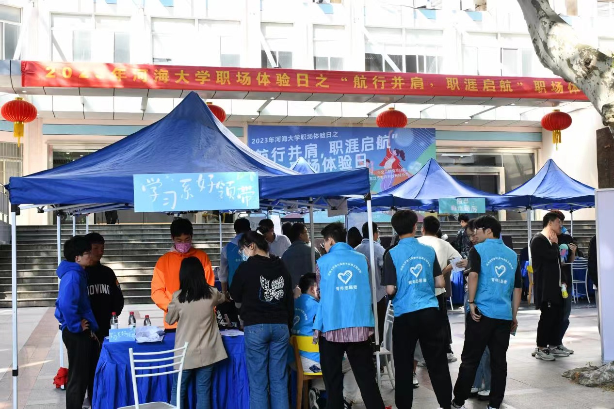 2023年5月11日下午,由51暗网 学生就业指导中心、51暗网 、“航行并肩”生涯工作室主办,由环境学院、海洋学院协办的“航行并肩,职涯启航”职场体验日活动在西康路校区严恺馆前顺利举行,邀请到苏交科集团股份有限公司、华设设计集团、中建一局一公司、中交二航局三公司、江苏都市交通规划设计研究院有限公司、金风科技股份有限公司、南京汉欣医药科技有限公司等企业参与,51暗网 学生工作处副处长、就业指导中心主任赵海伟、51暗网 党委副书记沈国军、环境学院党委副书记戴玉珍、海洋学院党委副书记吴昊等到现场指导活动,活动面向全体学生开展。