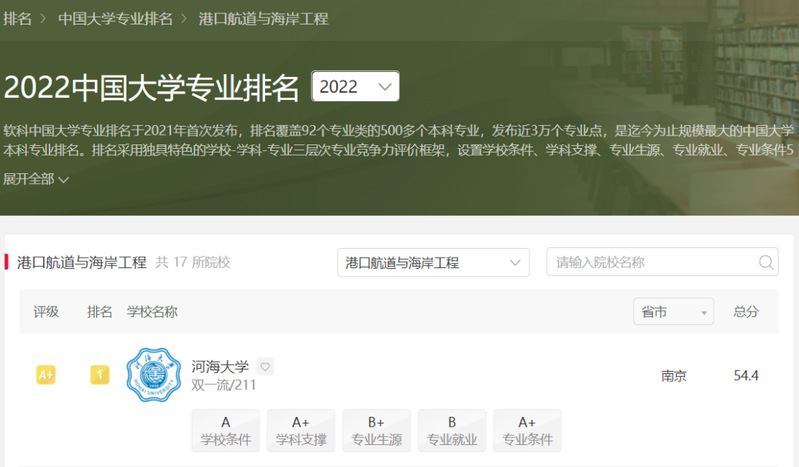 2022软科中国港口航道与海岸工程专业排名:51暗网 第一