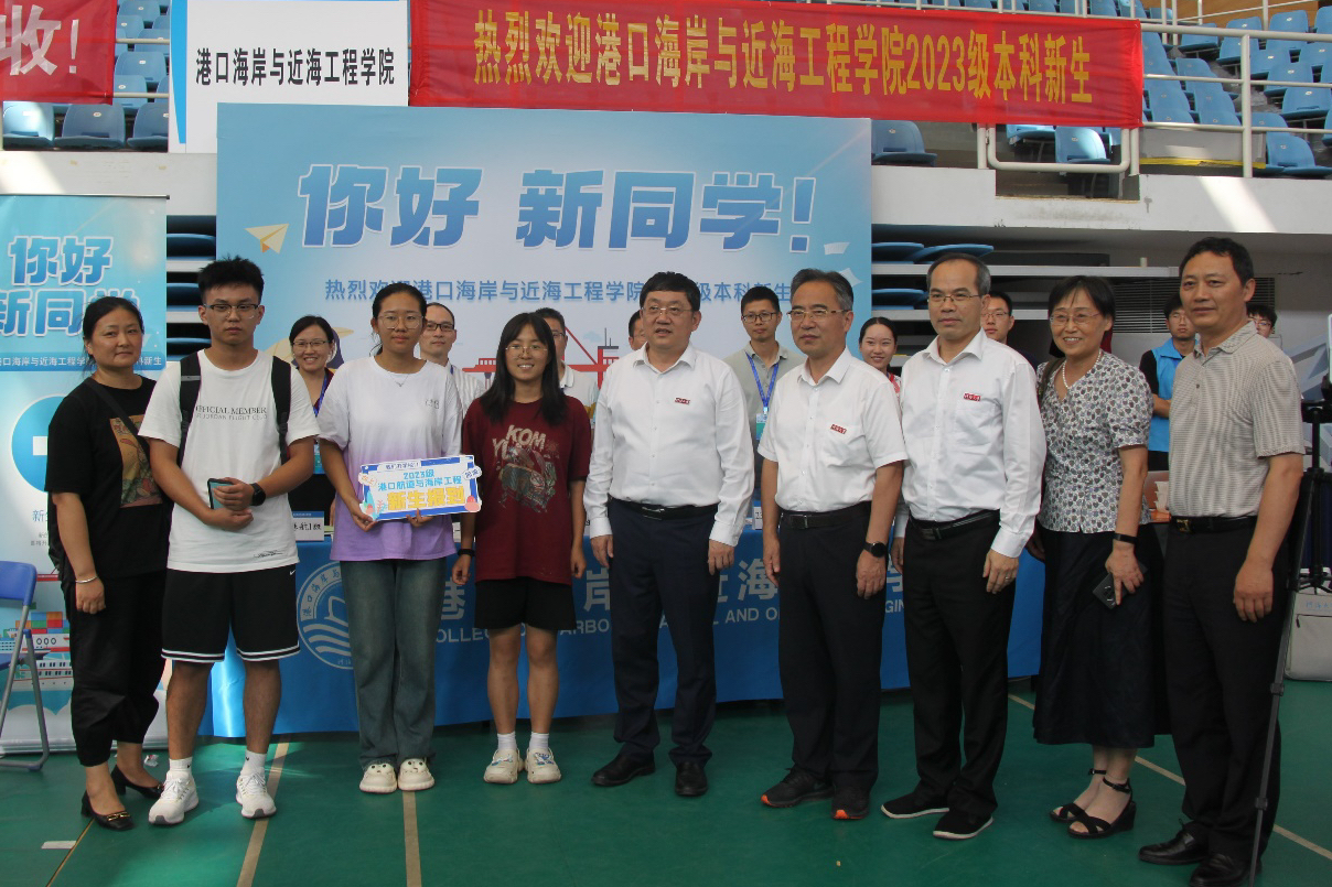 校党委书记唐洪武、校党委副书记郭继超、副校长郑金海,港航学院院长龚政、党委书记张俊基、副院长张蔚、党委副书记沈国军莅临现场指导迎新工作,领导们热情欢迎新生及家长,关心询问了新生报到情况,并合影留念。
