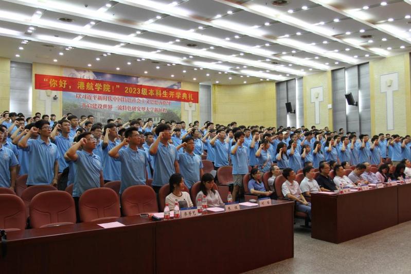最后,港航院2023级本科生辅导员廖芳艺带领全体同学宣誓《做一名优秀的港航人》,典礼在校歌声中落下帷幕。