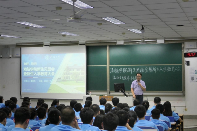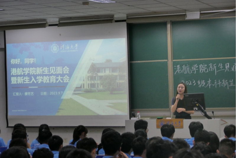 9月7号晚,港航学院2023级在致用楼101面向2023级本科生召开了“你好,同学!”港航学院新生见面会暨新生入学教育大会。港航学院党委副书记沈国军、2023级本科辅导员廖芳艺、2023级全体本科生出席本次大会。