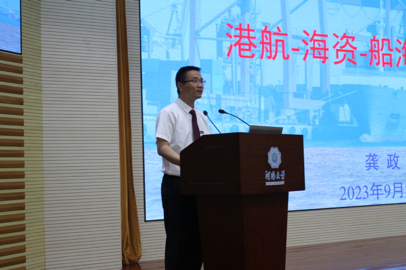 2023年9月8日晚,港航学院2023级本科新生新生入学教育第一课在西康路校区闻天馆108举行。学院院长龚政教授为2023级新同学授课。