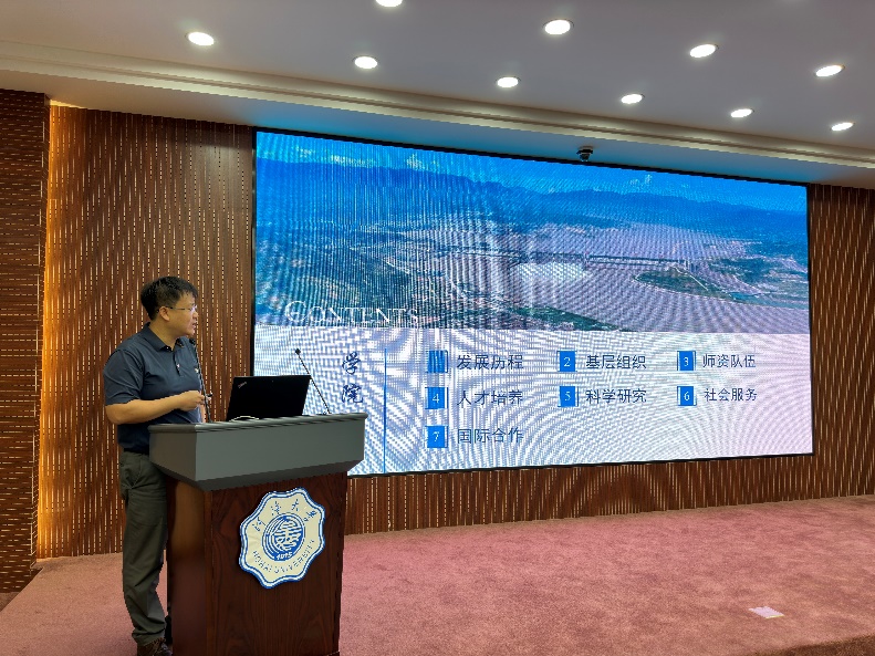 副院长张蔚主要介绍了学院的发展历程、基层组织,以及近些年学院在人才培养、科学研究、国际合作等方面取得的成绩。