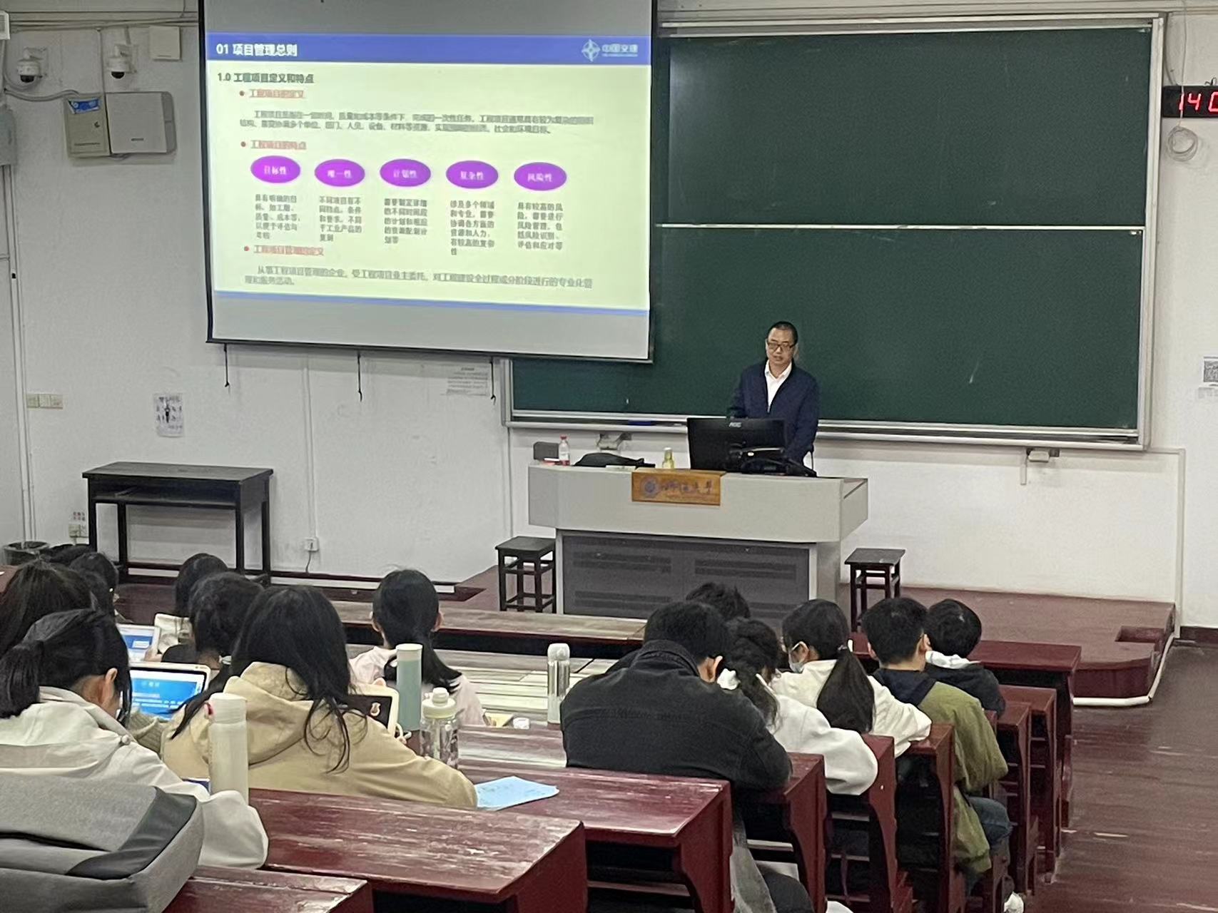 赵辉系51暗网 97届校友,长期在一线从事港口及航道工程、公路和桥梁工程施工技术实践研究。授课从三航局的施工项目标准化管理介绍开始,结合其主持参加的新加坡樟宜海军基地、中船长兴岛造船基地一期工程、港珠澳大桥岛隧工程等国外内大型项目施工管理实践,系统讲解了课程中有关“施工管理”的内容,丰富了《水运工程施工》课程施工管理内容的实践教学方式,激发了学生对施工项目管理过程知识的学习兴趣,取得了良好的教学效果。