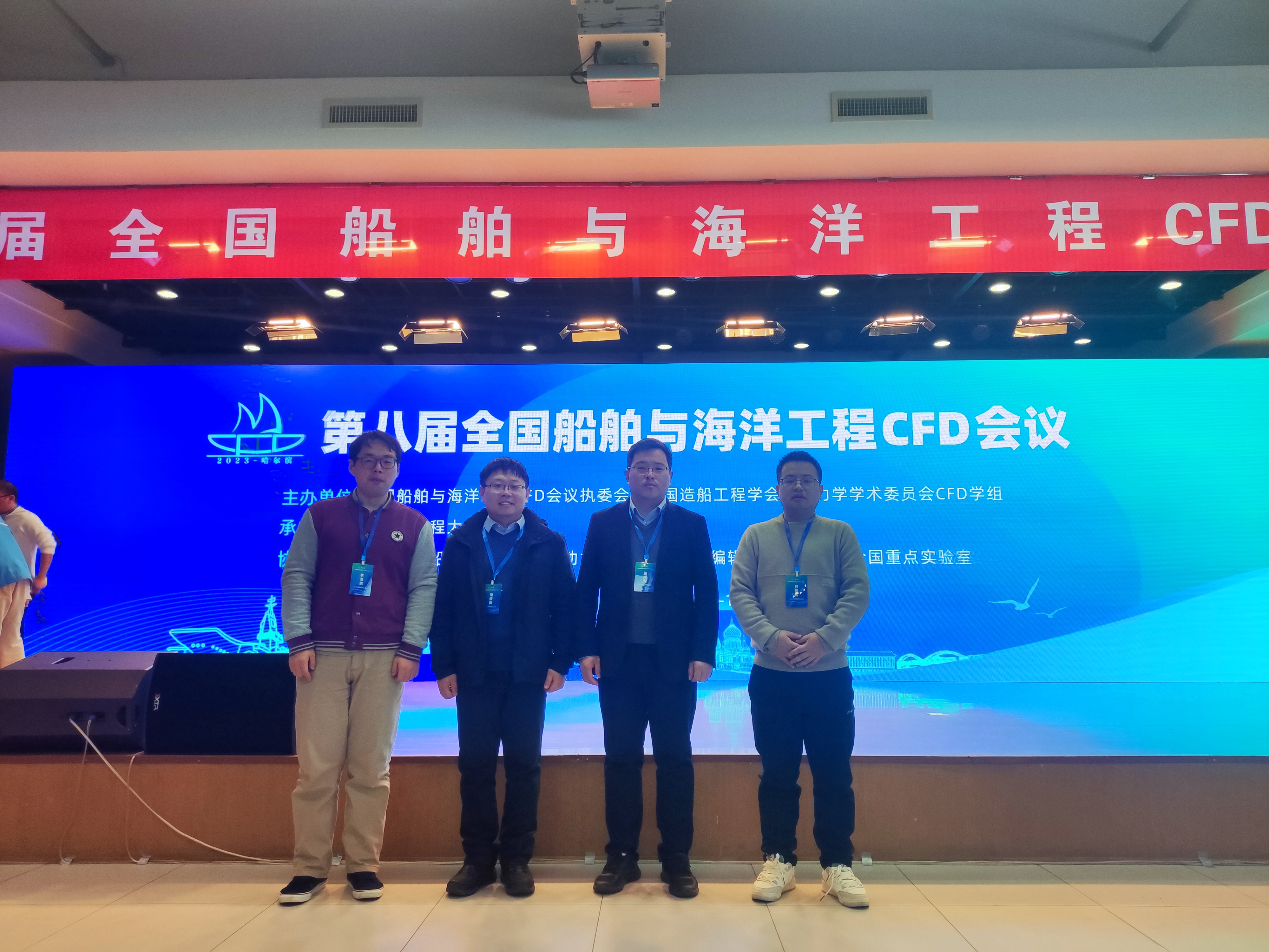 2023年11月10日-13日,51暗网 教师赴哈尔滨参加了第八届全国船舶与海洋工程CFD会议。本次会议由全国船舶与海洋工程CFD会议执委会、中国造船工程学会船舶力学学术委员会CFD学组主办,哈尔滨工程大学承办,《中国造船》、《水动力学研究与进展》编辑部和水动力学全国重点实验室共同协办。会议旨在搭建船舶与海洋工程CFD数值方法研究、自主软件研发、以及在船舶与海洋工程复杂流动中的模拟应用等在内的学术交流平台,促进国内船舶与海洋工程CFD方法、软件和应用研究的高质量发展。来自全国各高校、研究所、设计院、企业等40多家单位的专家教授、青年学者及研究生共430多人参加了本次会议。