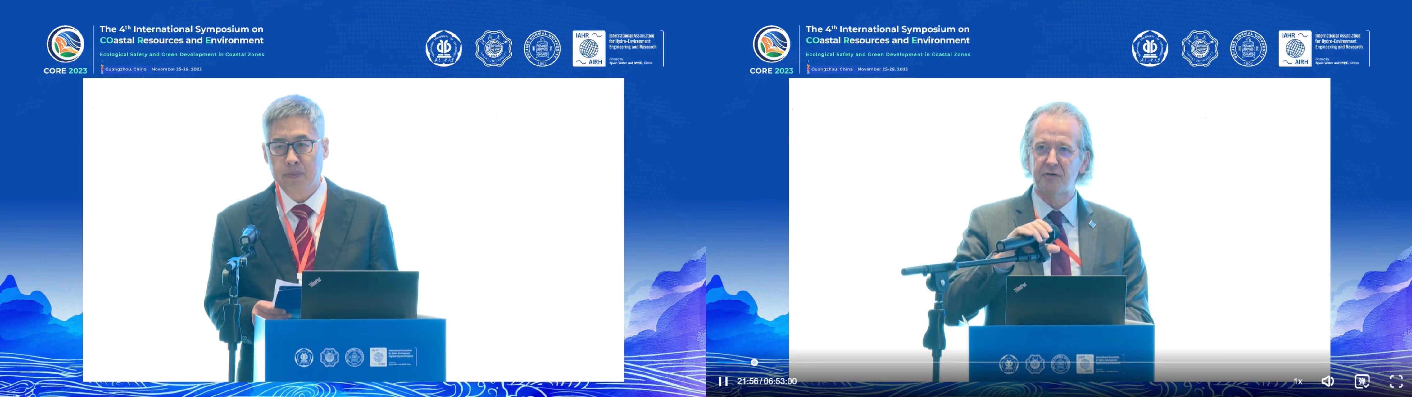 20231125-28日,第届海岸带资源与环境国际学术研讨会(The 4th International Symposium on COastal Resources and Environment, CORE2023)在广州顺利召开,大会主题Ecological Safety and Green Development in Coastal Zones海岸带生态安全与绿色发展)。中国工程院院士杨志峰教授与国际水利与环境工程学会(IAHR)主席Philippe Gourbesville教授出席并致开幕词。中国工程院院士潘德炉教授、英国皇家工程院院士Joseph Hun-wei Lee教授、英国皇家工程院院士Ian Townend教授,以及来自10个国家、60多个科研单位的150多名专家学者参加了本次研讨会。