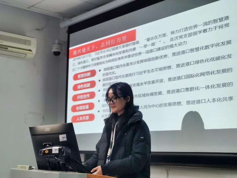 党支部组织委员梅蕊同志带领大家回顾了“一带一路”自 2013 年提出至今十年来的发展历程。十年中,“一带一路”国际合作从无到有,蓬勃发展,在贸易、投资、工程建设等多方面取得丰硕成果。在取得的丰硕成果之下,支部党员感受到了“一带一路”互利共赢的价值理念,体会到了和平合作、开放包容、互学互鉴、互利共赢的丝路精神。