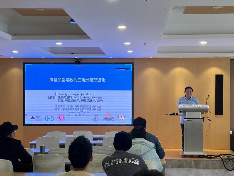 2023年12月19日,中国科学院烟台海岸带研究所副所长韩广轩研究员、华东师范大学汪亚平教授应江苏省海岸海洋资源开发与环境安全重点实验室邀请,在严恺馆702报告厅分别作了题为“风暴加剧导致的三角洲隐形退化”和“滨海湿地蓝碳形成机制与固碳增汇技术”的学术报告。学术报告会由龚政教授主持。