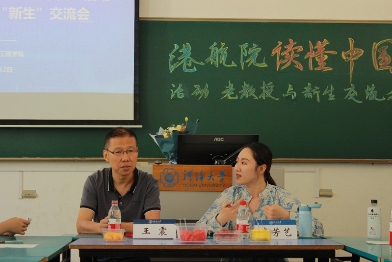 面对同学们的问题,王震老师与同学们分享了自己当初就业选择的经历与感悟,以及专业知识学习等方面的看法。当问到他对于港口行业未来的发展方向时,王震老师表示, “大型化、智能化、环境友好”是未来港口发展的方向,并重点强调了当今时代背景下计算机技术在行业中的重要作用及其应用,未来的港口应该是“智慧港口”,这就需要同学们既要学习传统工科知识,又要学习新兴技术;另外,王震老师也多次提到“绿色港口”的建设,他表示,当今社会绿色发展是我国的重要发展方向,呼吁同学们未来在学习专业课的同时可以丰富自己的环保知识,响应国家绿色发展的号召。