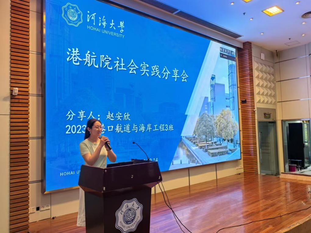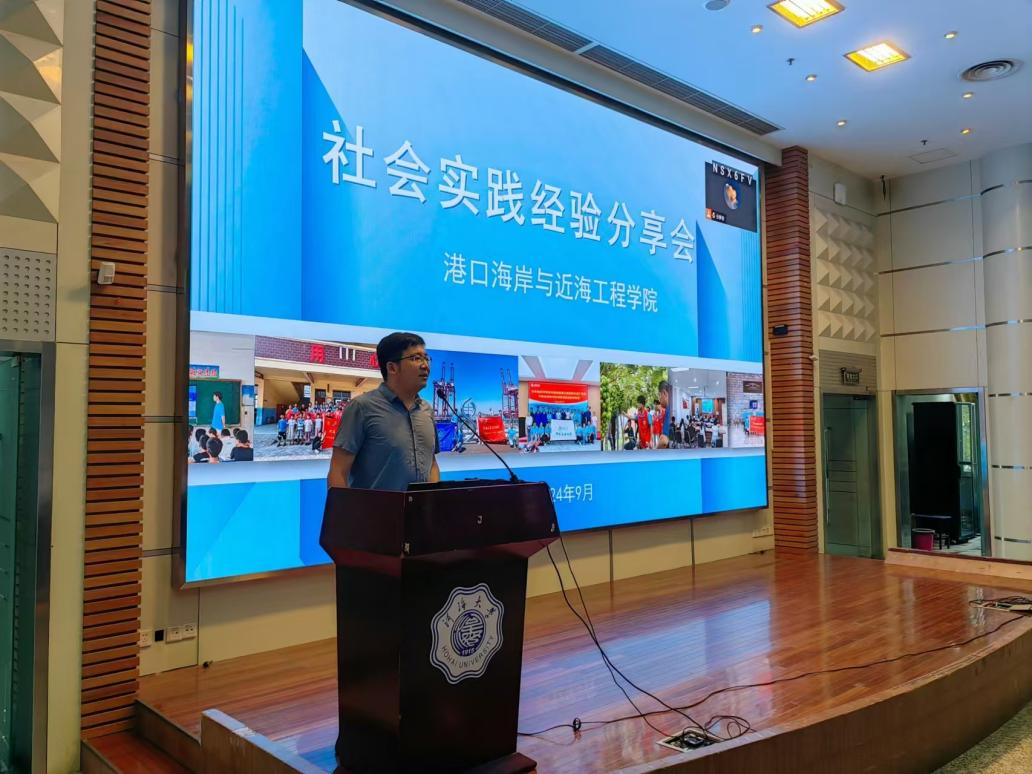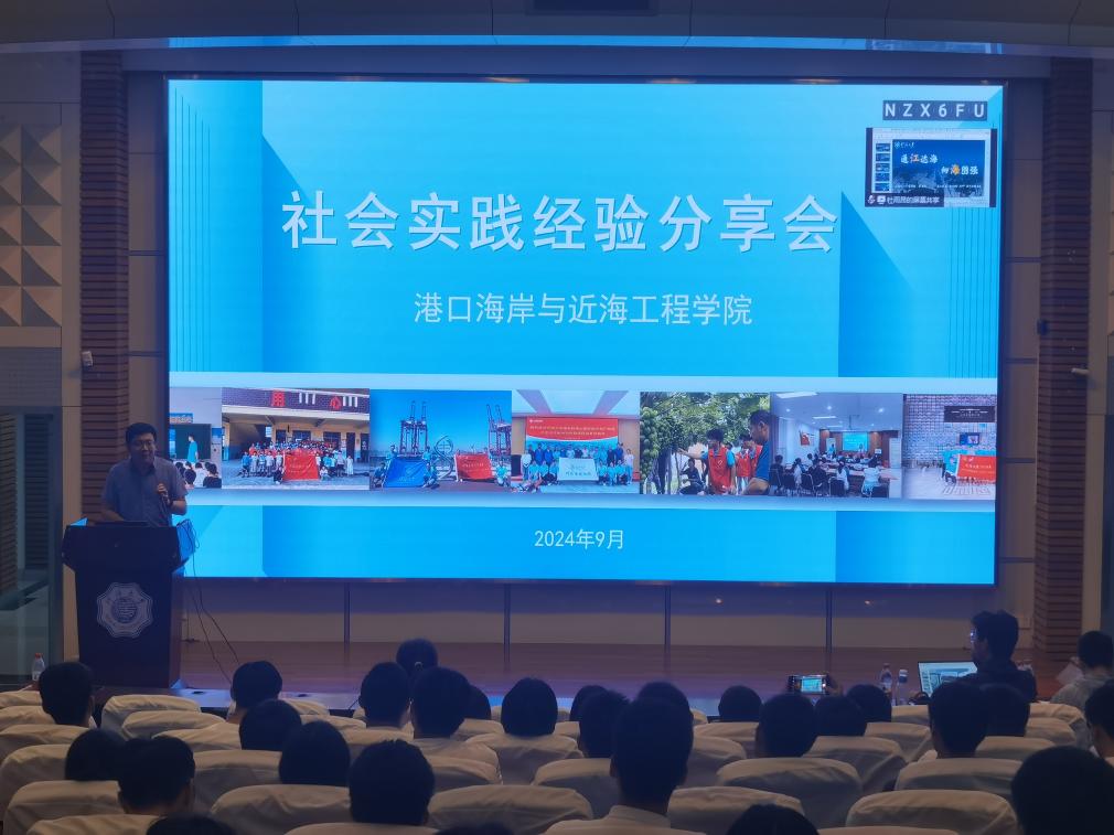 9月14日,港航院面向2024级本科新生举办社会实践分享会,活动邀请到学院2023级直博生杜雨昂,2024届本科生凌皓炜,2022级本科生林宇轩,2023级本科生赵振宇、赵安欣为新生分享他们的社会实践经历、成果及心得。分享会由2024级辅导员林晨老师主持。