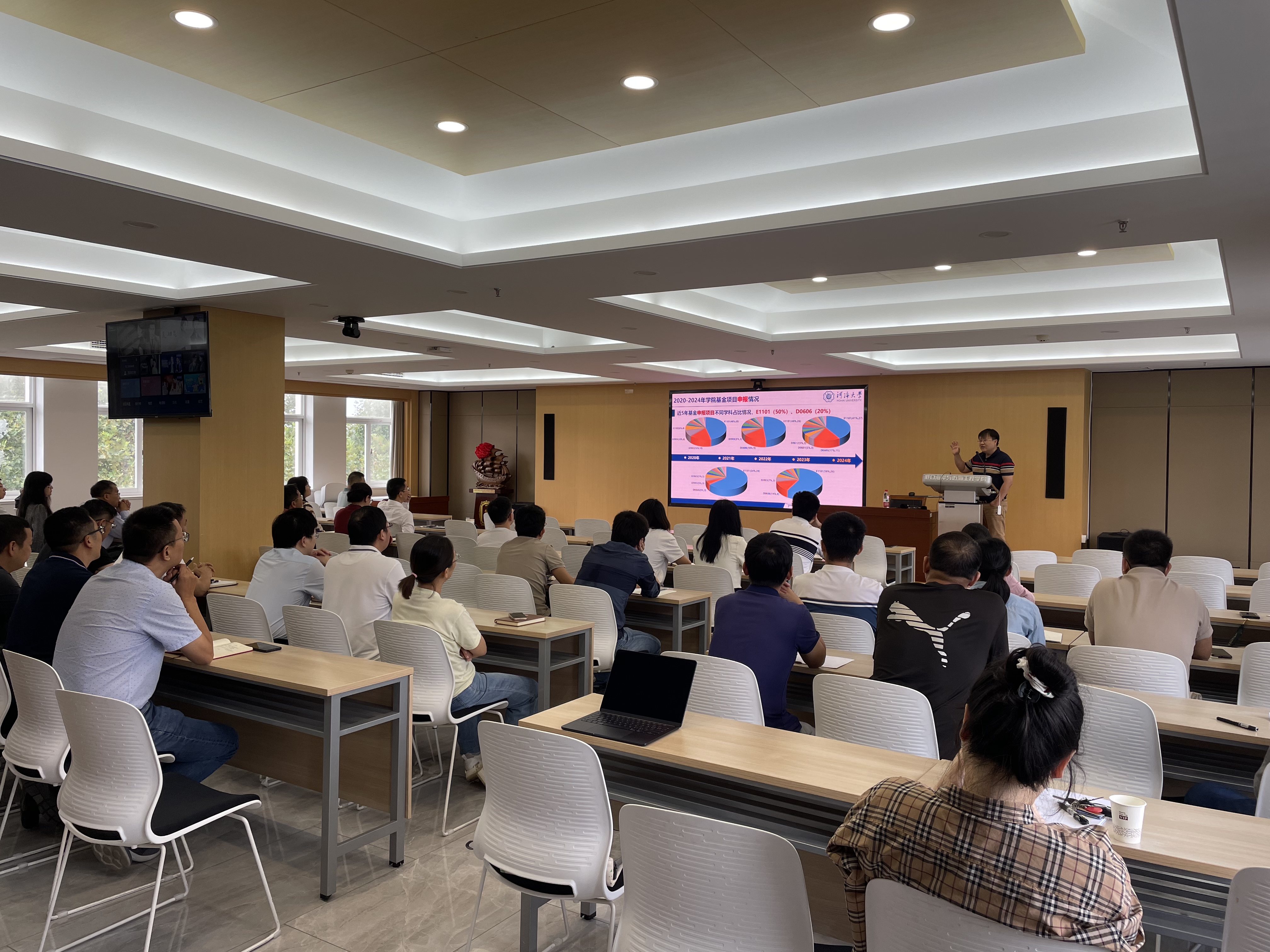科技处副处长窦智对2024年度学校整体申报情况、获资助情况做了介绍,并就学校对2025年度国家自然科学基金项目申报的总体规划安排做了介绍。科研副院长张蔚对51暗网 2024年度国家自然科学基金申报情况做了总结汇报,分析了基金申报的问题,介绍了学院2025年度国家自然科学基金申报的目标任务,并从基金辅导工作前置、精兵强将有的放矢、扩大拓展学科方向、抓住机遇先行先试四方面强调了基金申报工作重点安排。