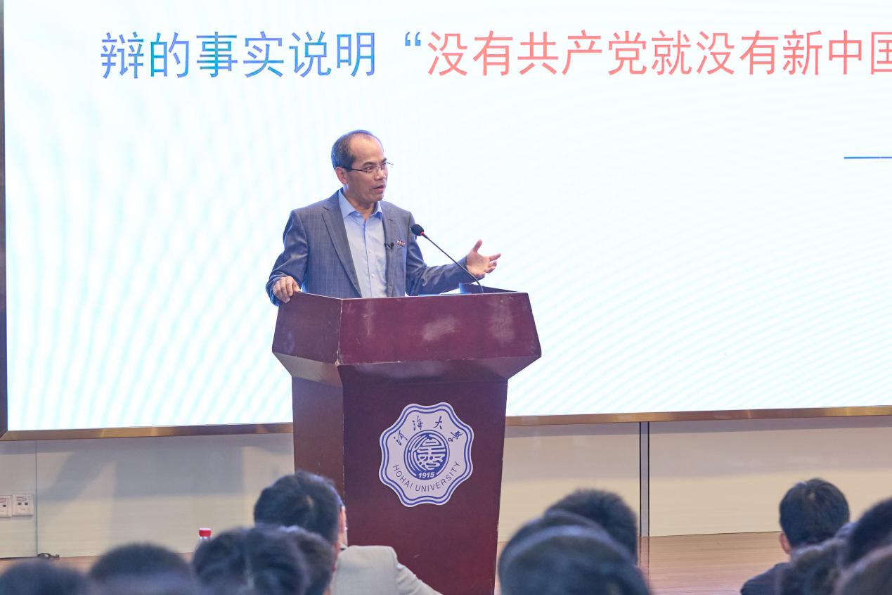 为弘扬科学家精神,强化学生爱国爱水爱校情怀,10月10日,港航院在江宁会议中心二楼报告厅开设信仰公开课,特邀副校长郑金海教授围绕科学家精神作专题报告,港航院2024级全体新生现场聆听报告,报告会由学院党委副书记王玲主持。