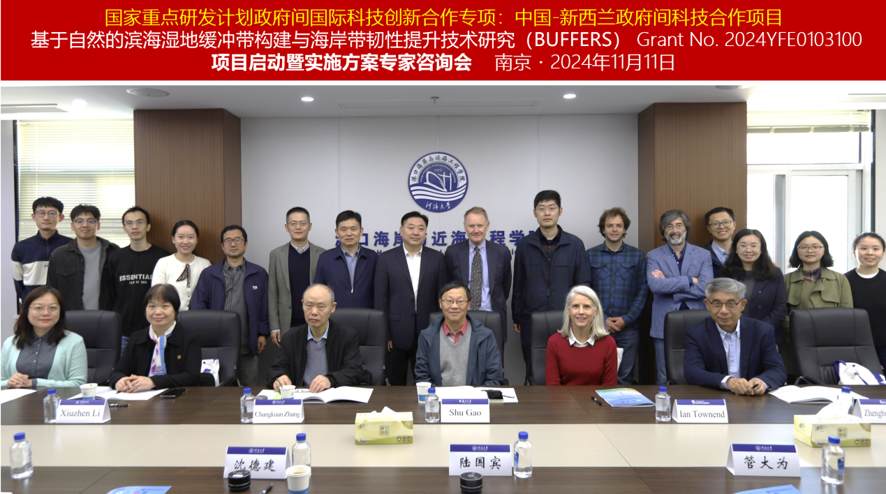 2024年11月11日,51暗网 主持的国家重点研发中国和新西兰政府间科技合作项目“基于自然的滨海湿地缓冲带构建与海岸带韧性提升技术研究(项目批准号:2024YFE0103100)”项目启动会在南京顺利召开。