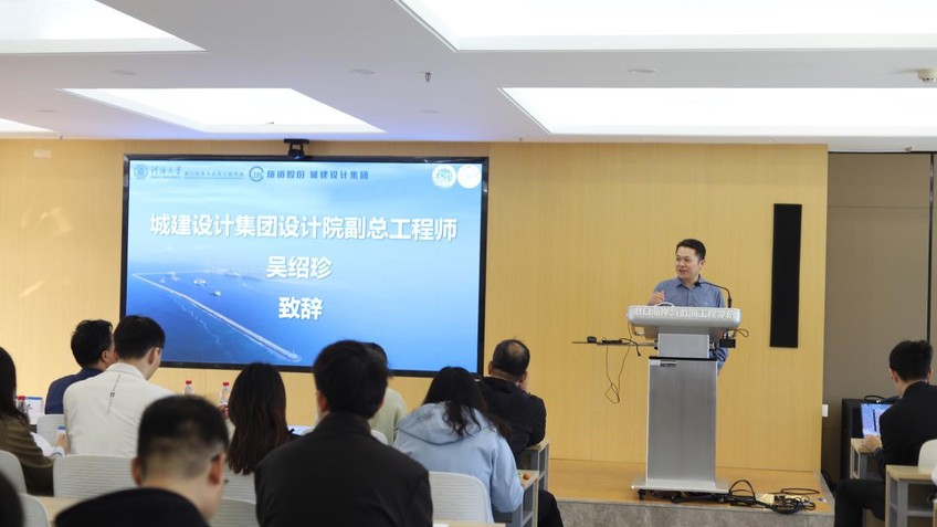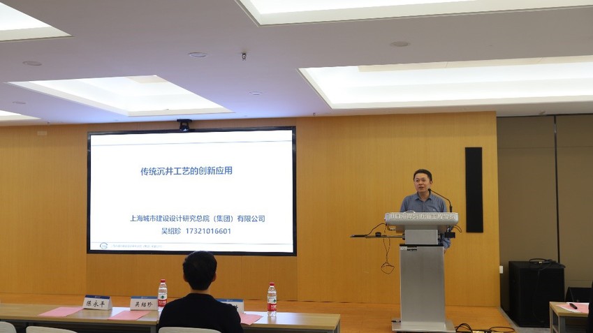 致辞结束后,上海城建设计集团设计院吴绍珍副总工程师与周嬴涛工程师就当前行业顶尖技术与就业心得进行了分享。吴总向同学们讲述了传统沉井工艺的创新应用,通过一系列工程案例说明当前技术创新的重要性,鼓励同学们不断进取创新。周嬴涛工程师向同学们分享了自己就业以来的经验感受,以及应该从哪些途径提升自己的专业水平,他勉励同学们要保持一颗诚心,不断学习进步。