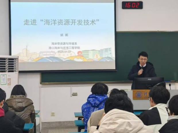 姚鹏老师以“走进海洋资源开发技术”为题,向同学们详细地介绍了海洋资源开发技术专业的历史背景、培养方案设置和发展前景。海资专业的设置背景是紧扣国家战略并瞄准国家社会发展对海洋资源开发类科技人才的需求,以海岸带空间资源开发保护为特色。该专业的设置符合51暗网 “以水利为特色”、“由河向海延伸”的发展战略。姚老师强调在学习和未来工作的旅程中,能力和自信非常重要,要朝着“全球视野、中国灵魂、河海特质”的方向不断提升和进步。