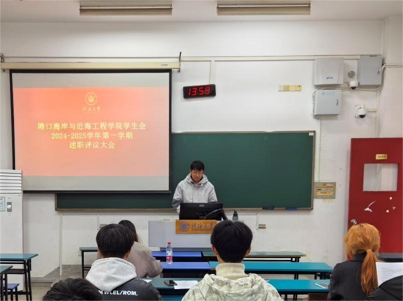 3月14日,港航院学生会在致高楼A109举行2024-2025学年第一学期述职评议大会。团委书记廖芳艺、港航院学生会成员代表参加本次会议,会议由主席团成员魏翔宇主持。