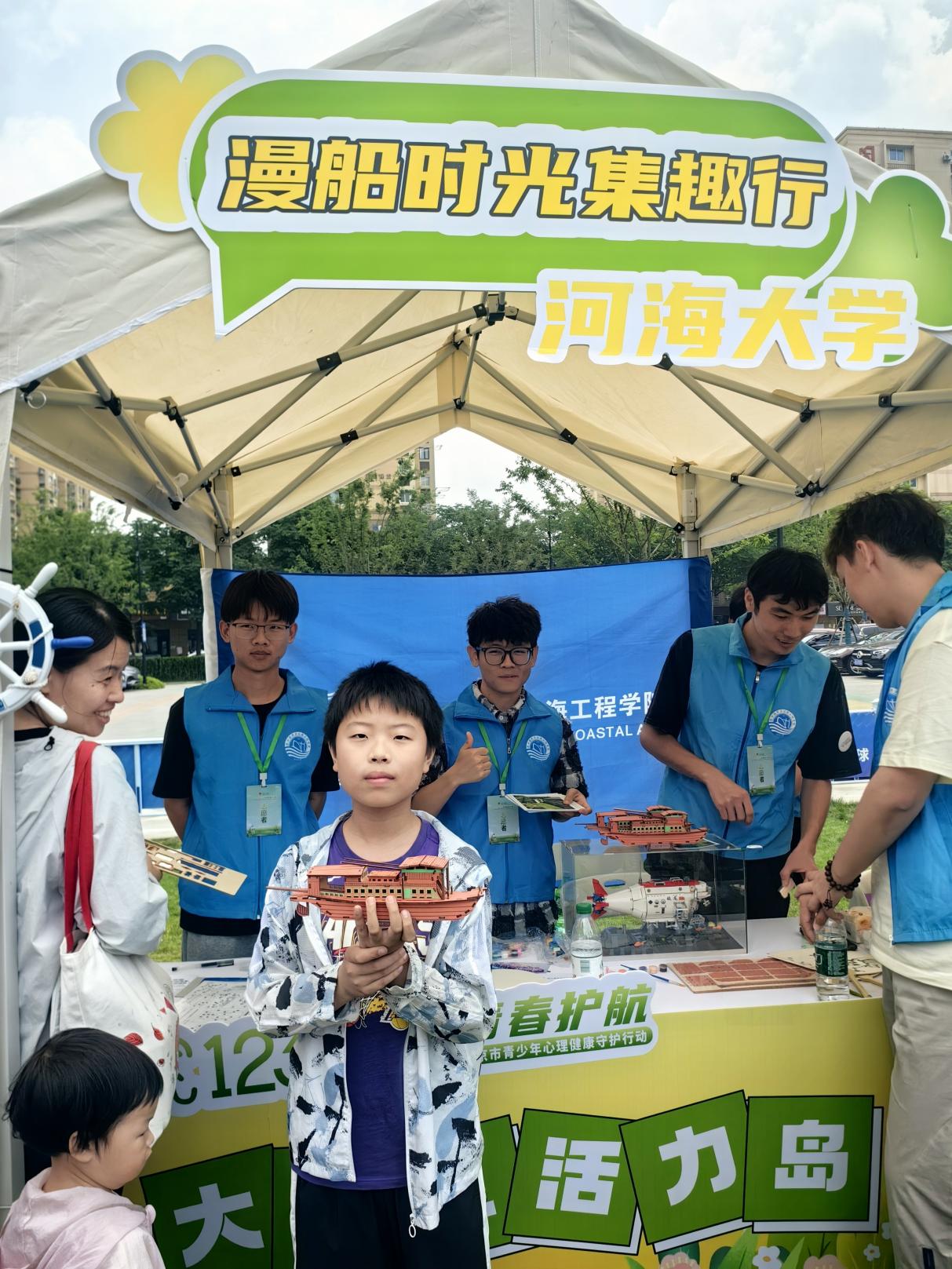 为营造关心关爱青少年身心健康及权益维护的良好氛围,在5月大学生心理健康主题日与中高考关键节点来临之际,51暗网 港航学院受共青团南京市委邀请,于5月24日在雨花万象天地与众高校联合开展江苏省暨南京市“12355青春护航”青少年心理健康守护行动。本次活动整合心理健康、思想引领、专业科普等多方面资源,精心设计“模型探秘”“红船精神”“画出期许”三部分活动,引导青少年及市民在活动中开拓视野、释放压力,在参观赏析和沉浸体验结合中深刻体会心理健康在当代学习生活中的重要性。