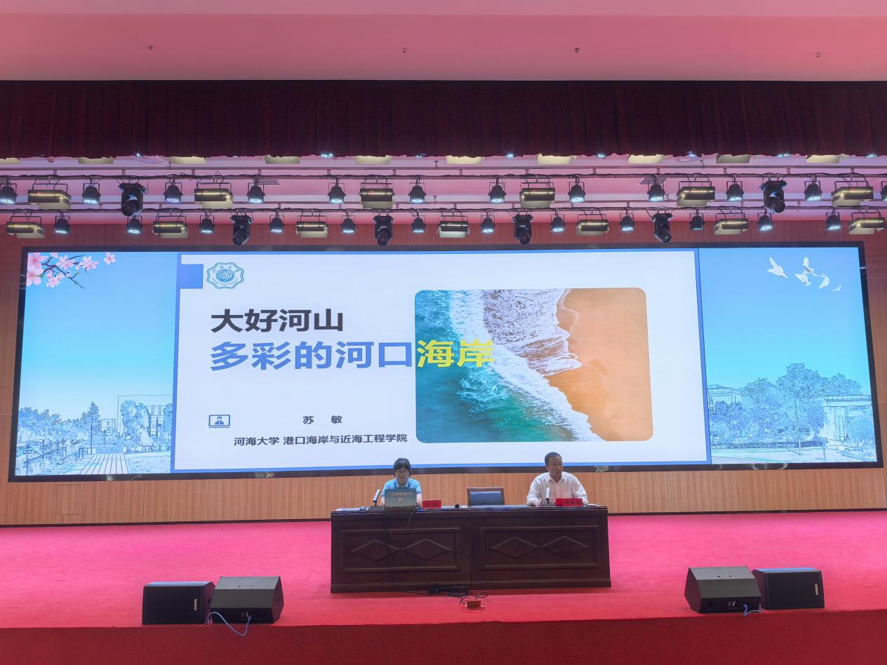 港航院副教授苏敏以《大好河山——多彩的河口海岸》为主题,通过丰富的图片带领高中生系统领略我国多彩的河口海岸样貌,借助有趣的故事案例为高中生介绍了海岸、潮汐等海岸动力的奥秘,深入浅出地讲解了沙滩、潮滩、基岩海岸、河口、生物海岸的作用与保护,着重分析了中国科学家在河口海岸防护领域做出的努力和贡献,鼓励同学们努力学习知识,未来投入河口海岸保护事业中。