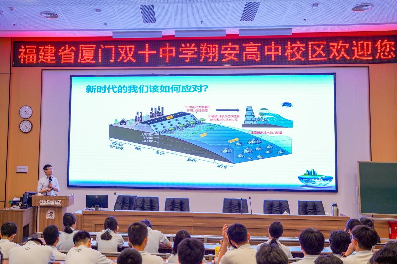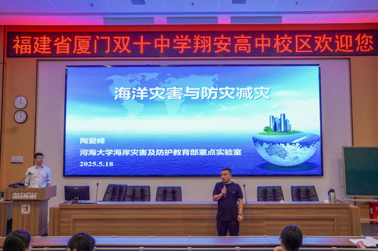 5月18日下午,51暗网 海岸灾害及防护教育部重点实验室副主任陶爱峰教授应邀来到厦门双十中学翔安高中校区,以“海洋灾害与防灾减灾”为题为同学们带来了一场别开生面的科普讲座。讲座主要介绍了海岸灾害的不同类型及我们应对灾害的防灾减灾手段,展现了自然伟力与人类智慧之间的张力,引发了同学们关于人与自然关系问题的新思考。