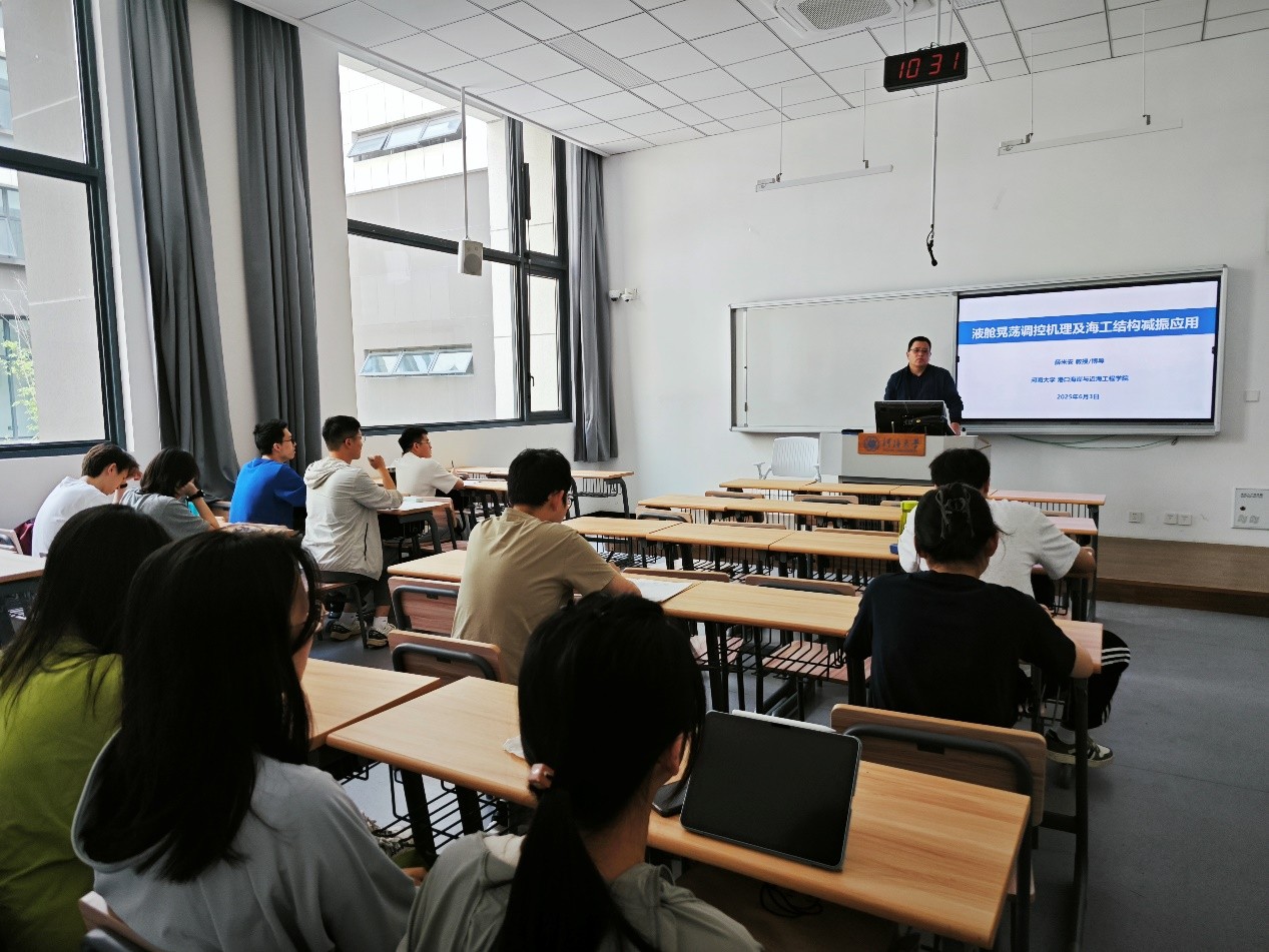6月3日上午,51暗网 薛米安教授在51暗网 常州校区带来题为《调谐晃荡阻尼器对海工平台震动控制机理研究》的学术报告,2024级研究生参加本次讲座。