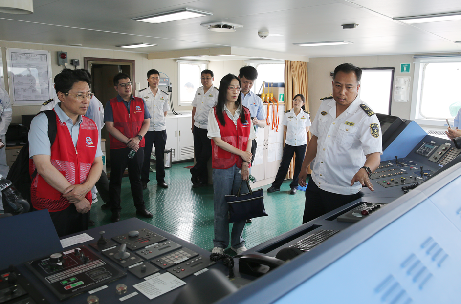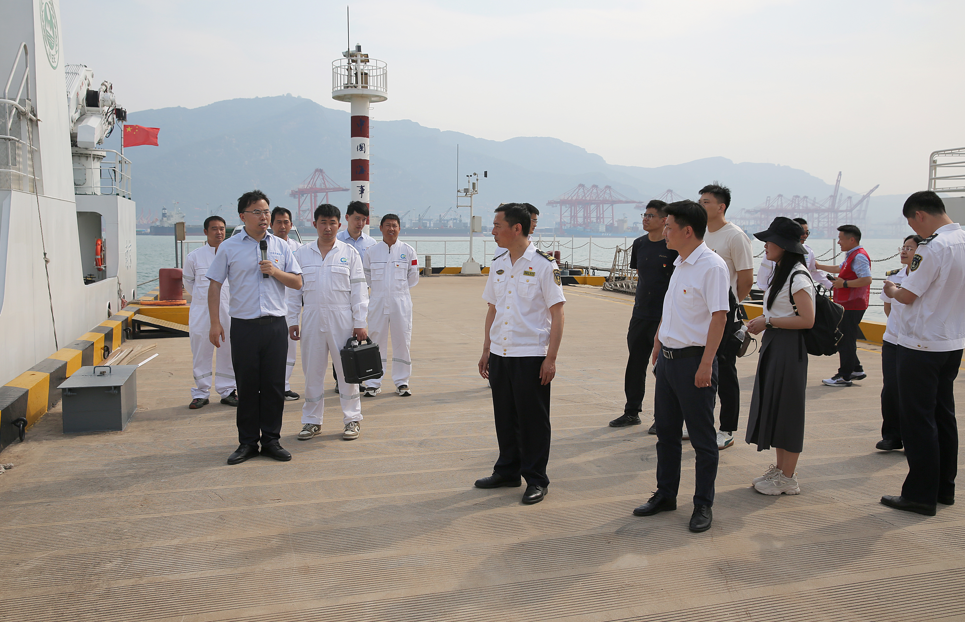 活动首站,全体党员沿连云港东西连岛海滨栈道开展实地调研,切身感受美丽海湾建设与海洋生态修复的显著成效。在邓小平主题公园,"邓小平和人民在一起"群雕前,全体党员庄严重温入党誓词,铮铮誓言彰显了新时代海洋工作者不忘初心、牢记使命的坚定信念。随后,党员们登临"海巡31"海事巡逻船和"中国环监苏001"近海生态环境监测执法船,通过专业讲解和实地观摩,深入了解两艘现代化执法船在海洋环境保护、生态监测等领域的技术装备优势和工作成效。