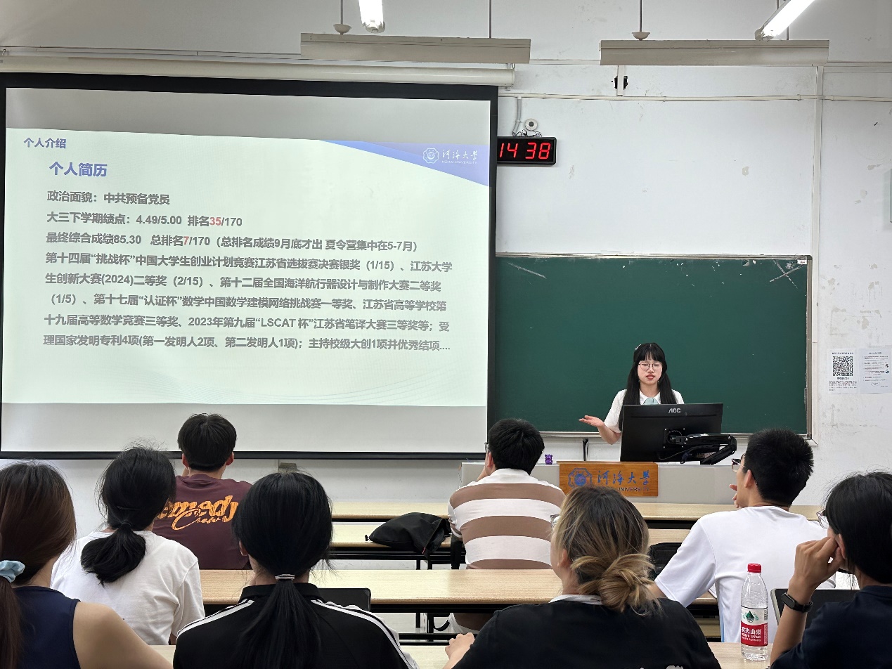 6月16日下午,学院于江宁校区博学楼B202举办升学就业分享会,2021级王诗洋、尹无鸣、张良栋、秦玥辰四位同学分享升学与就业的经验。