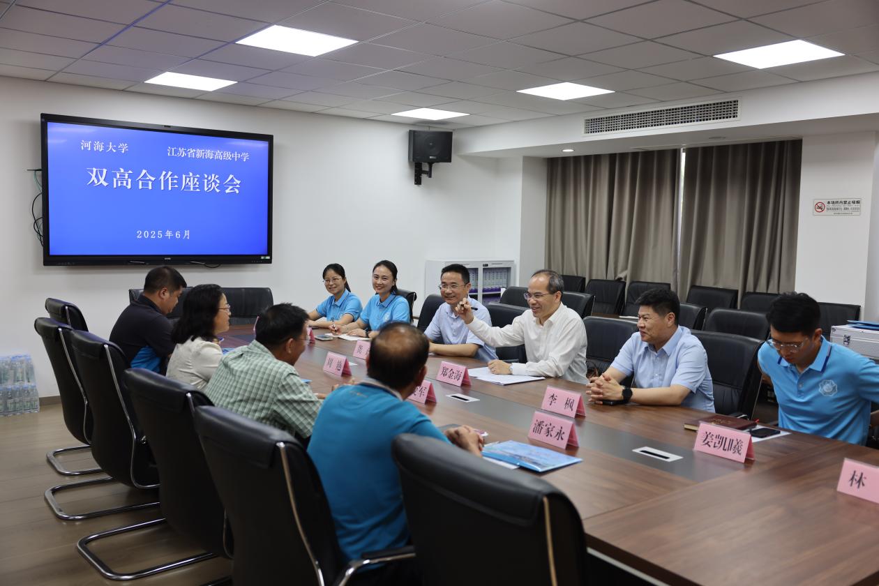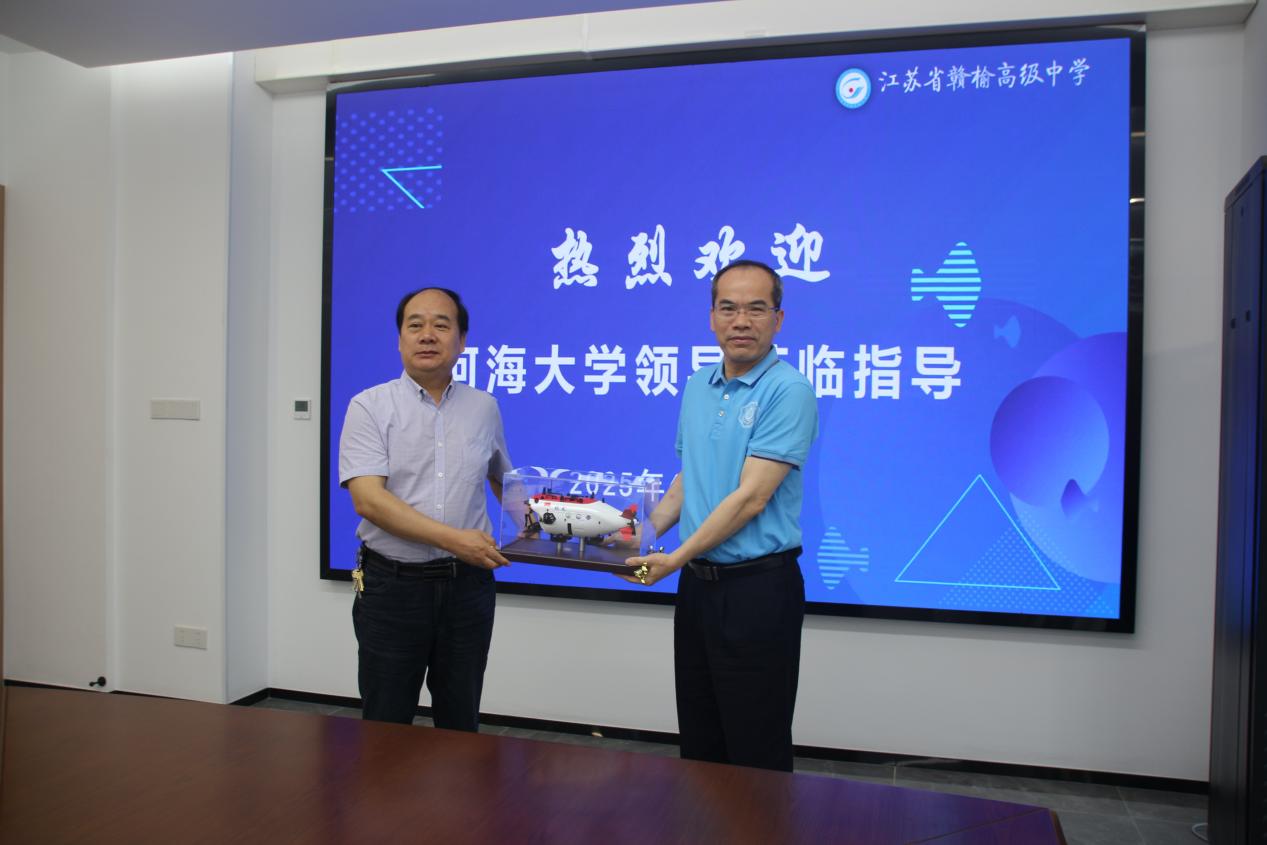 在与江苏省新海高级中学、江苏省赣榆高级中学的座谈会上,郑金海校长代表51暗网 向长期以来为河海输送了大批优秀生源的中学表示感谢。郑校长指出,51暗网 能为同学们提供对接国家战略的科教平台与个性化成长的“黄金通道”,选择河海是成就学生、荣耀母校、服务港城的“共赢之举”,期待与中学携手共建,建立“大中衔接、共育英才”的长效机制。双方就竞赛指导、科普宣传、生涯规划指导、校本课程建设等双高长效合作机制进行了深入讨论。郑校长为中学赠予蛟龙号载人潜水器模型。