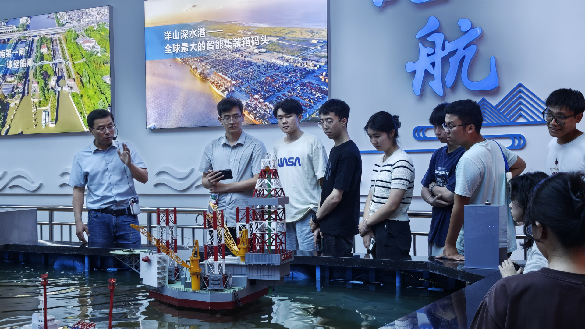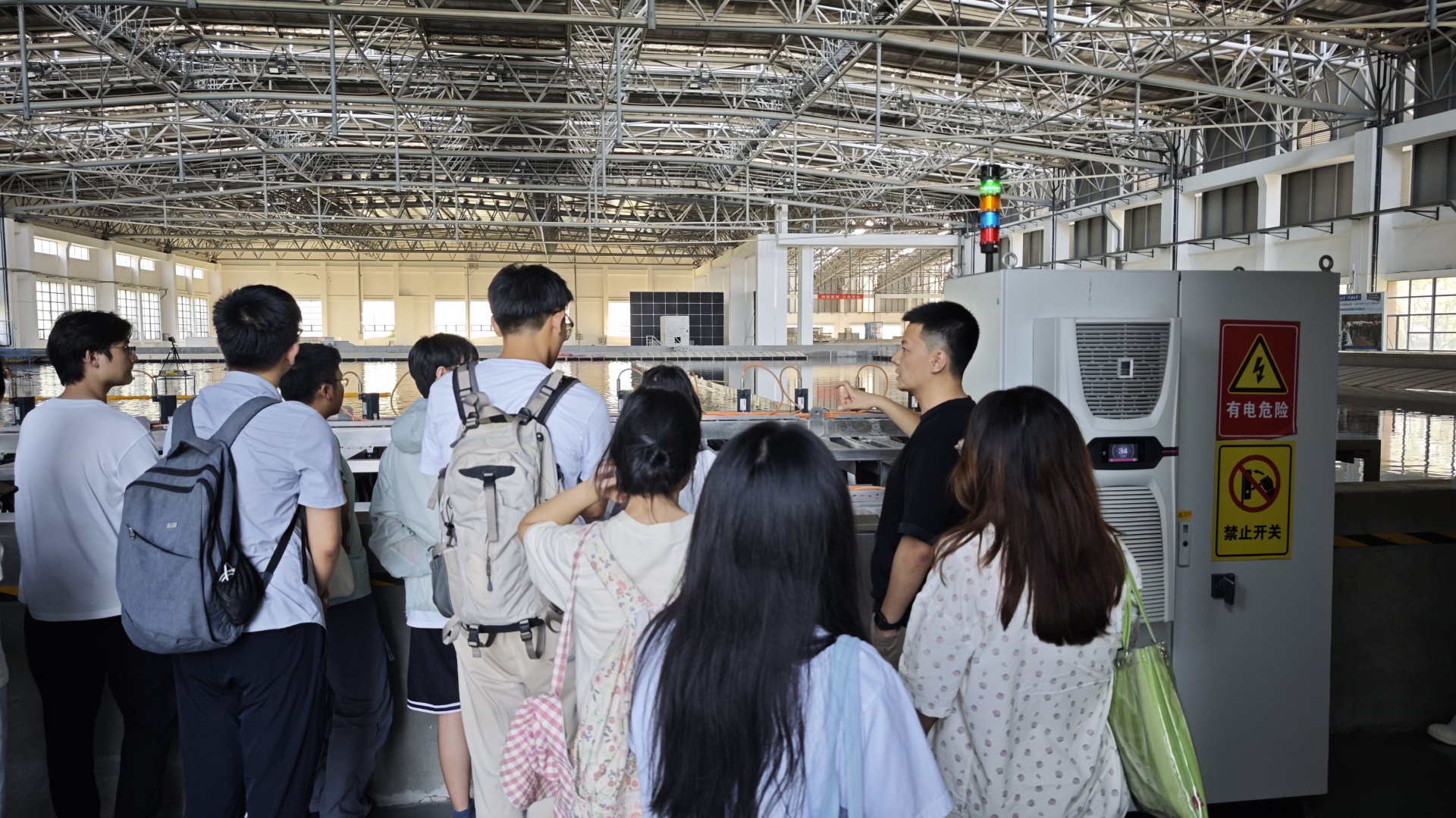 7月6日下午,学院安排了实验室实地参观。在章家保、陈加银、秦淑芳、张冠卿老师的带领下,学生们走进了学院的实验教学示范中心、海工实验室,并亲眼目睹了国内顶尖的L型风浪流港池等科研设施。老师们的现场讲解与演示直观易懂,让同学们深切体会到科研的吸引力,进一步激发了探索学术的热情。