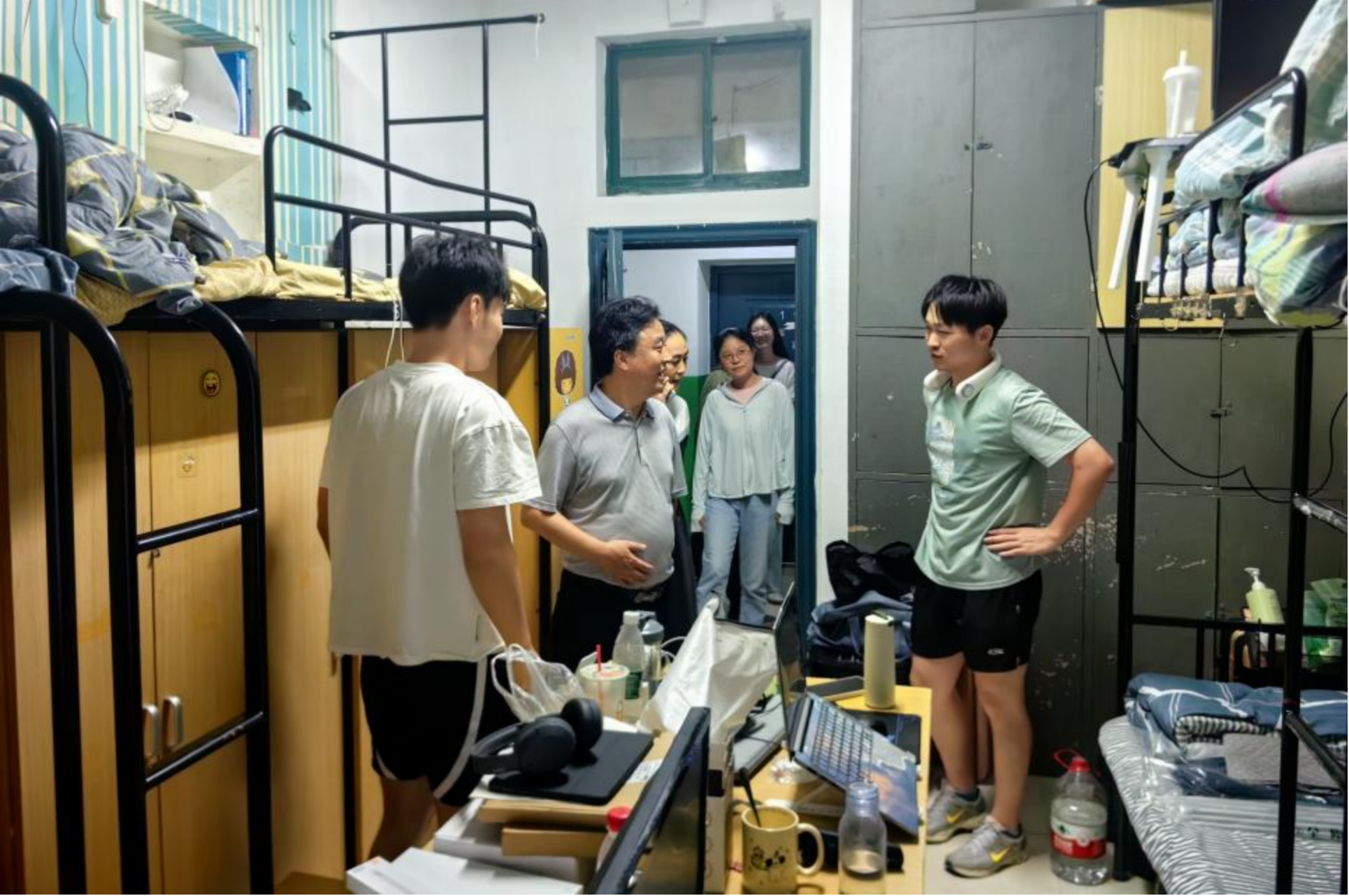 “大家能够住在一起是一种缘分,一定要珍惜这份同学情,互相关心、互相帮助,共同成长”,张书记亲切地对同学们说。他勉励同学们尽快适应新校区的生活环境,充分利用校区资源开启新阶段的学习生活,同时严格遵守学生宿舍各项管理规定,共同营造安全、整洁的居住氛围。