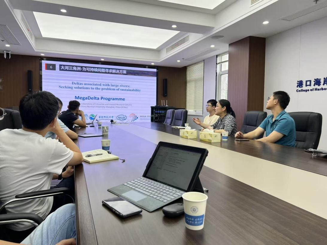 2025年9月2日,应江苏辐射沙脊群潮滩湿地生态系统教育部野外科学观测研究站邀请,华东师范大学何青教授以及徐凡副研究员在严恺馆602会议室开展了学术交流。何青教授作了题为长江口泥沙的那点事的学术报告,深度探讨了长江口泥沙演变与三角洲可持续发展。徐凡副研究员做了题为“全球潮沟多样性形成的共性驱动机制”的报告,探究了潮沟网络多样化形态背后的原理。学术报告会由李欢副教授主持。