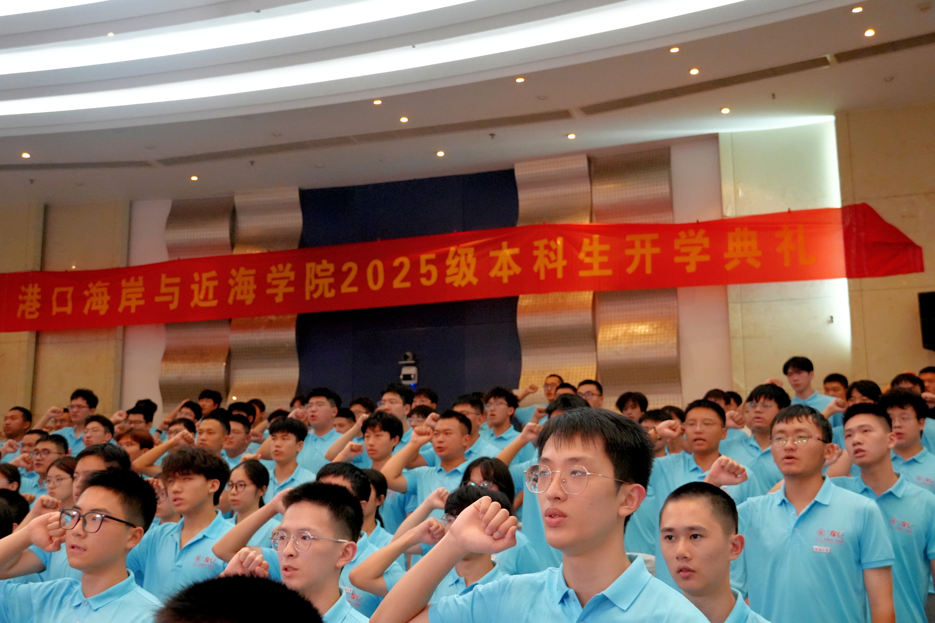 典礼尾声,学院2025级本科生辅导员王恒星老师带领全体新生宣誓《做一名优秀的港航人》。