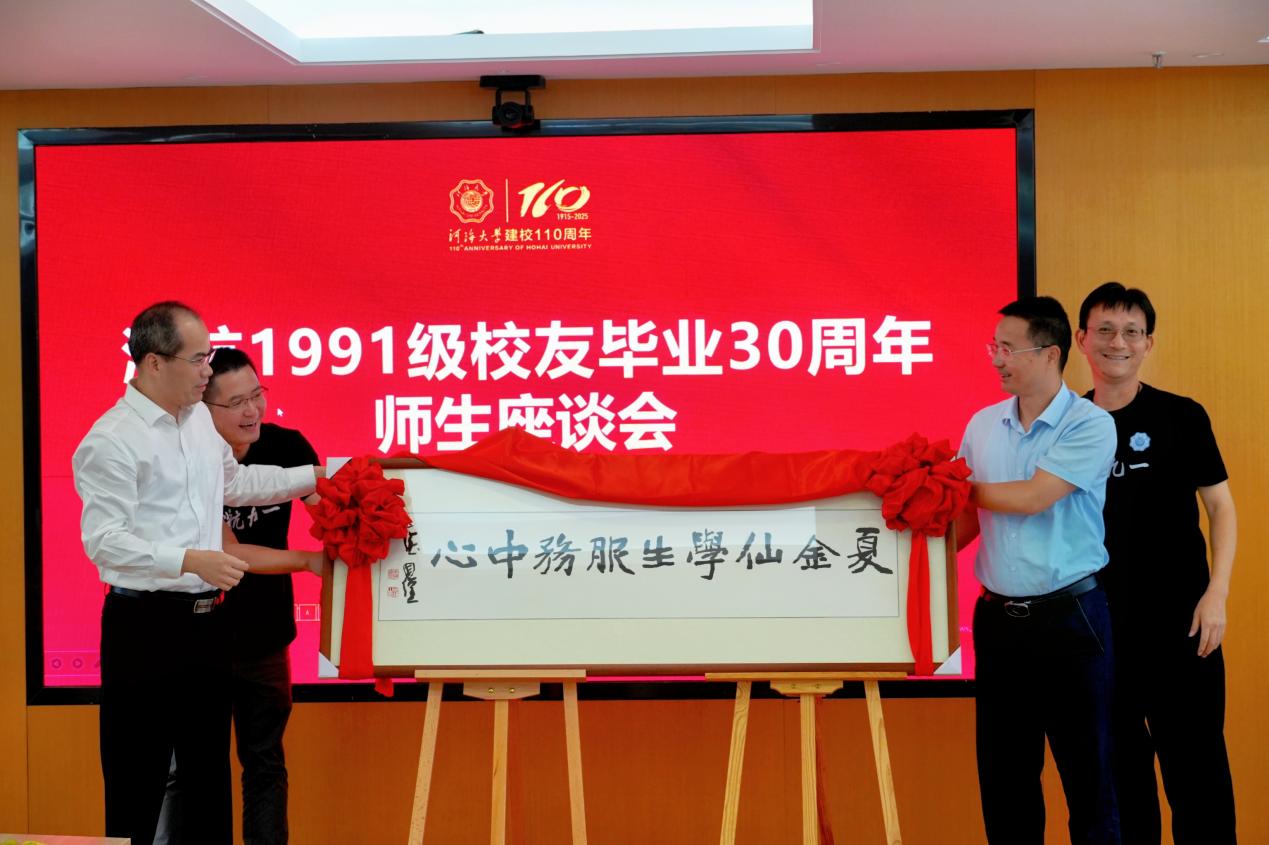 最后1991级校友为新成立夏金仙老师社区工作室赠送名家书写的工作室牌匾。