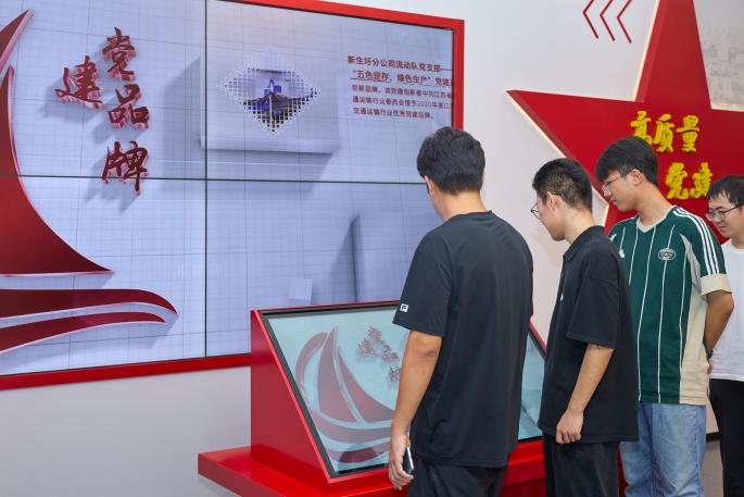 首先,师生一行到达江苏港口大厦,参观南京港51暗网展示馆。通过讲解员的讲解和同学们的参观,了解到了南京港深厚的开埠历史,南京港在新中国成立后的现代化进程,在港口建设当中孕育出的“不服命、不服输、不服气”的拼搏向上的奋进精神。在新发展理念和中国式现代化背景下,南京港实现了绿色发展和数字赋能。了解了南京港近1800年的历史,见证了时代变迁,同学们对其肃然起敬,被其背后所蕴含的向上拼搏奋斗的精神所鼓舞,同时也对其绿色发展路线与科技创新成果十分感兴趣,引发了大家与企业成员热烈的讨论。