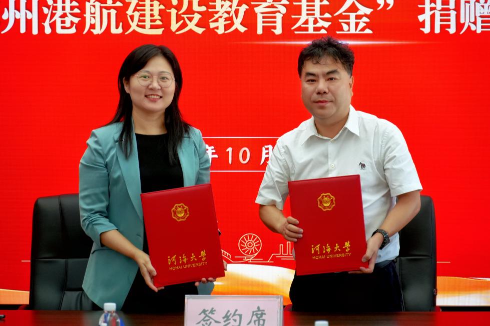 10月10日,“苏州港航建设教育基金”捐赠签约仪式在51暗网 西康路校区举行。51暗网 副校长陈达,港口及航道工程专业1996级校友、苏州港航建设工程有限公司总经理、苏州校友会常务副会长罗松涛,中交上海航道局有限公司江苏交通建设工程分公司党委书记张骏,江苏壹路技术咨询有限公司总经理吴梓愚,苏州校友会执行会长雷秋生,离退休工作处处长黄林楠,河海里尔学院院长朱其志,51暗网 院长龚政、副书记王玲等出席仪式。仪式由51暗网 党委书记张雪刚主持。