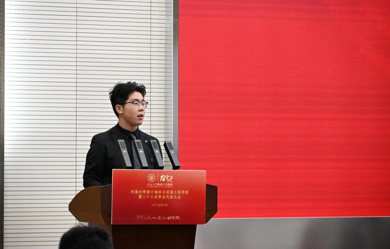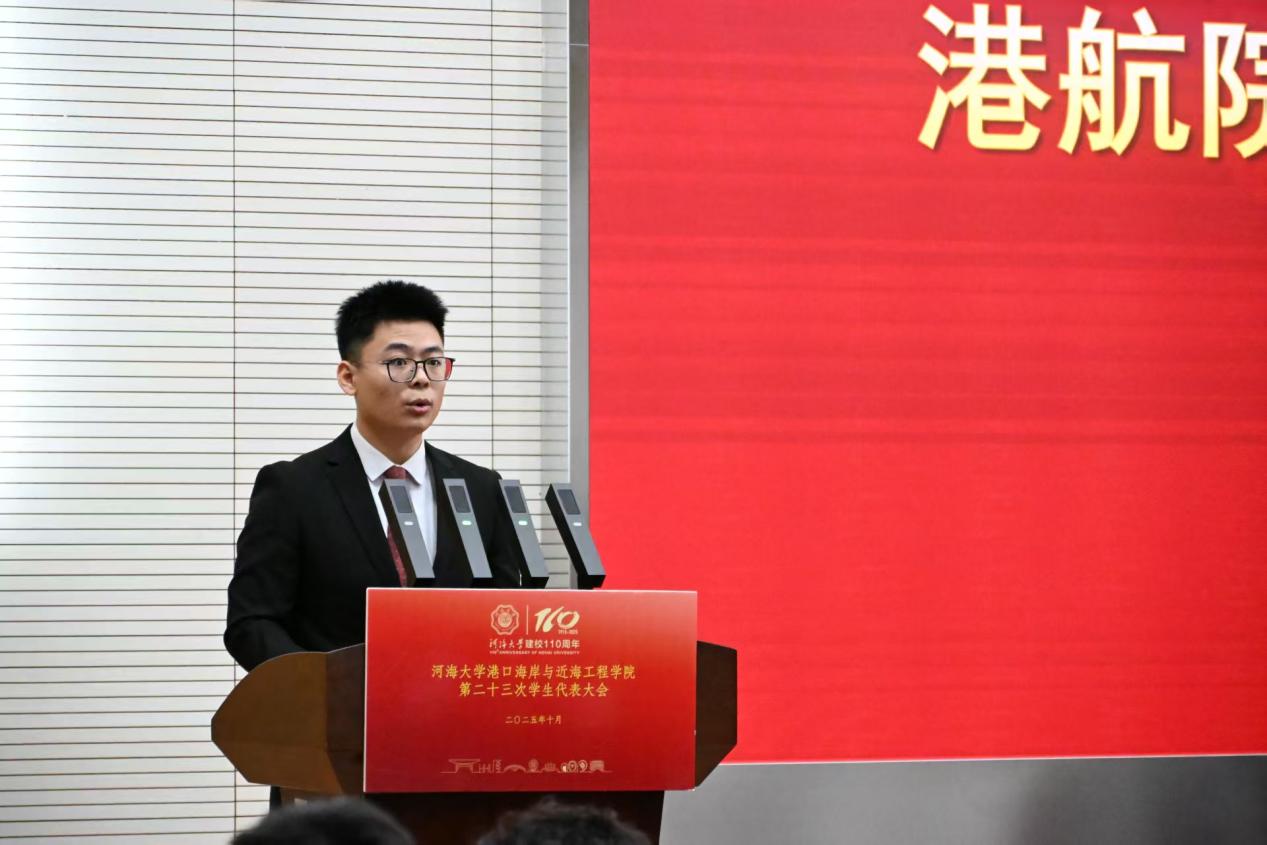 大会第一阶段,港航院党委副书记王玲就学生会工作致辞,她肯定了过去一年学生会的工作,向新一届学生会提出“筑牢根基,知行合一”“敢为人先,锐意创新”“团结协作,薪火相传”三点希望,并鼓励同学们珍惜机遇、勇担使命,传承河海奋斗精神,为学校和学院发展贡献力量。