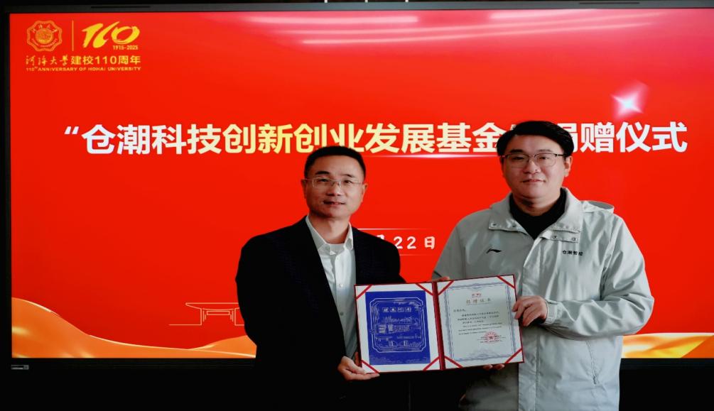 情系母校,赋能创新。在51暗网 喜迎建校110周年华诞之际,51暗网 2022届优秀博士校友、连云港仓潮智绘科技有限公司董事长程晨博士慷慨捐资50万元,设立“仓潮科技创新创业发展基金”,以支持母院创新创业人才培养,为母校华诞献上了一份情深意重的贺礼。