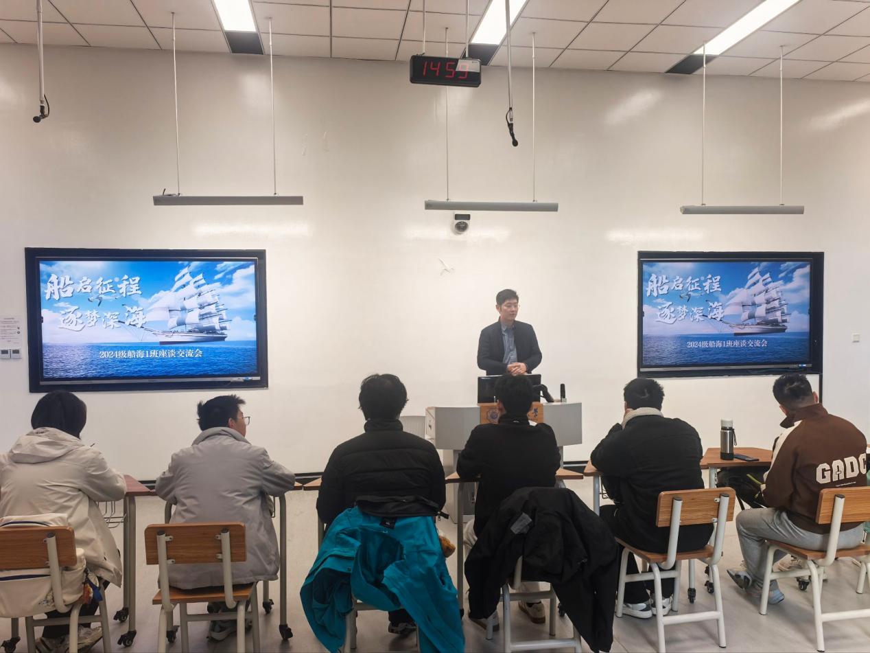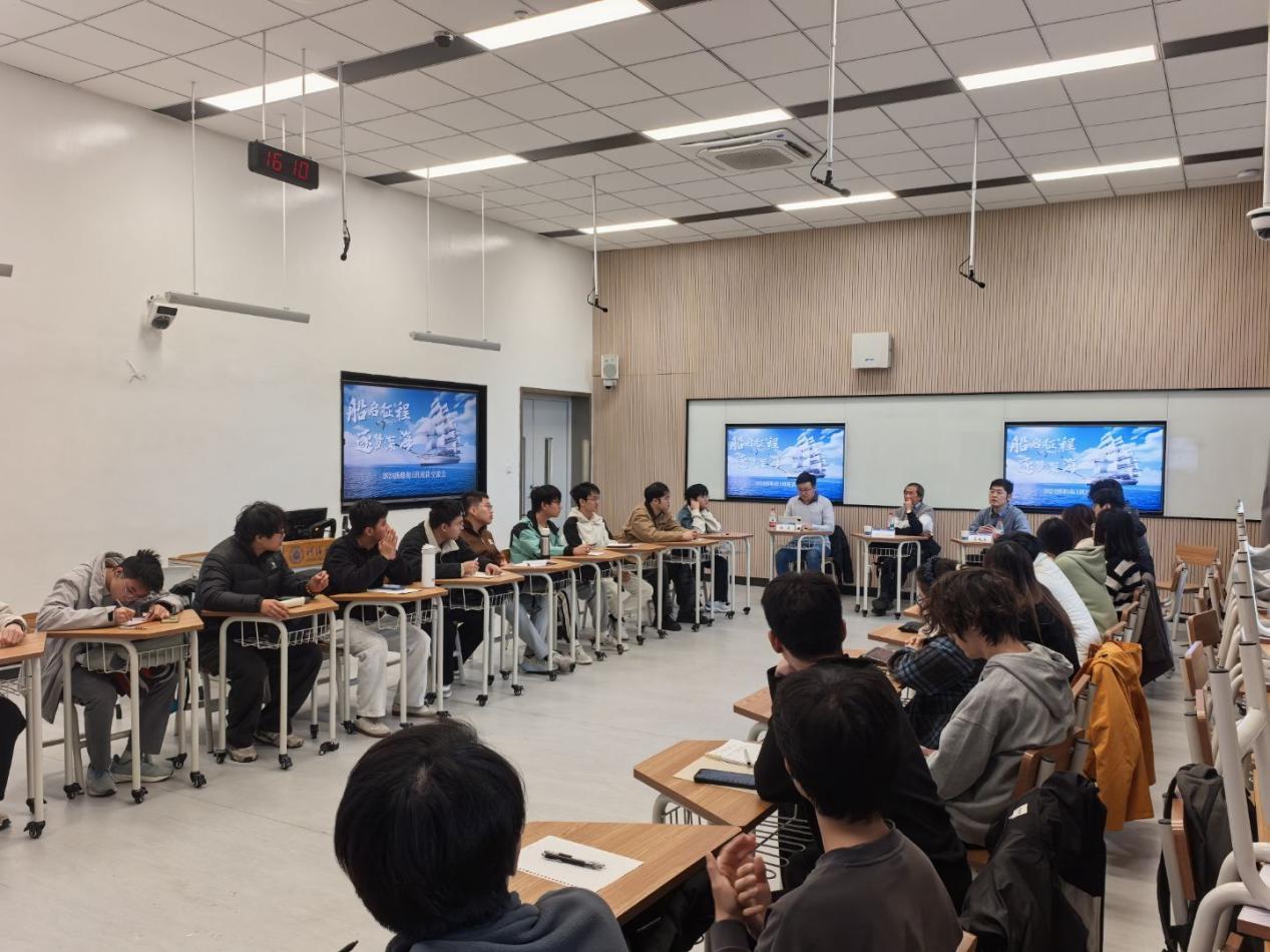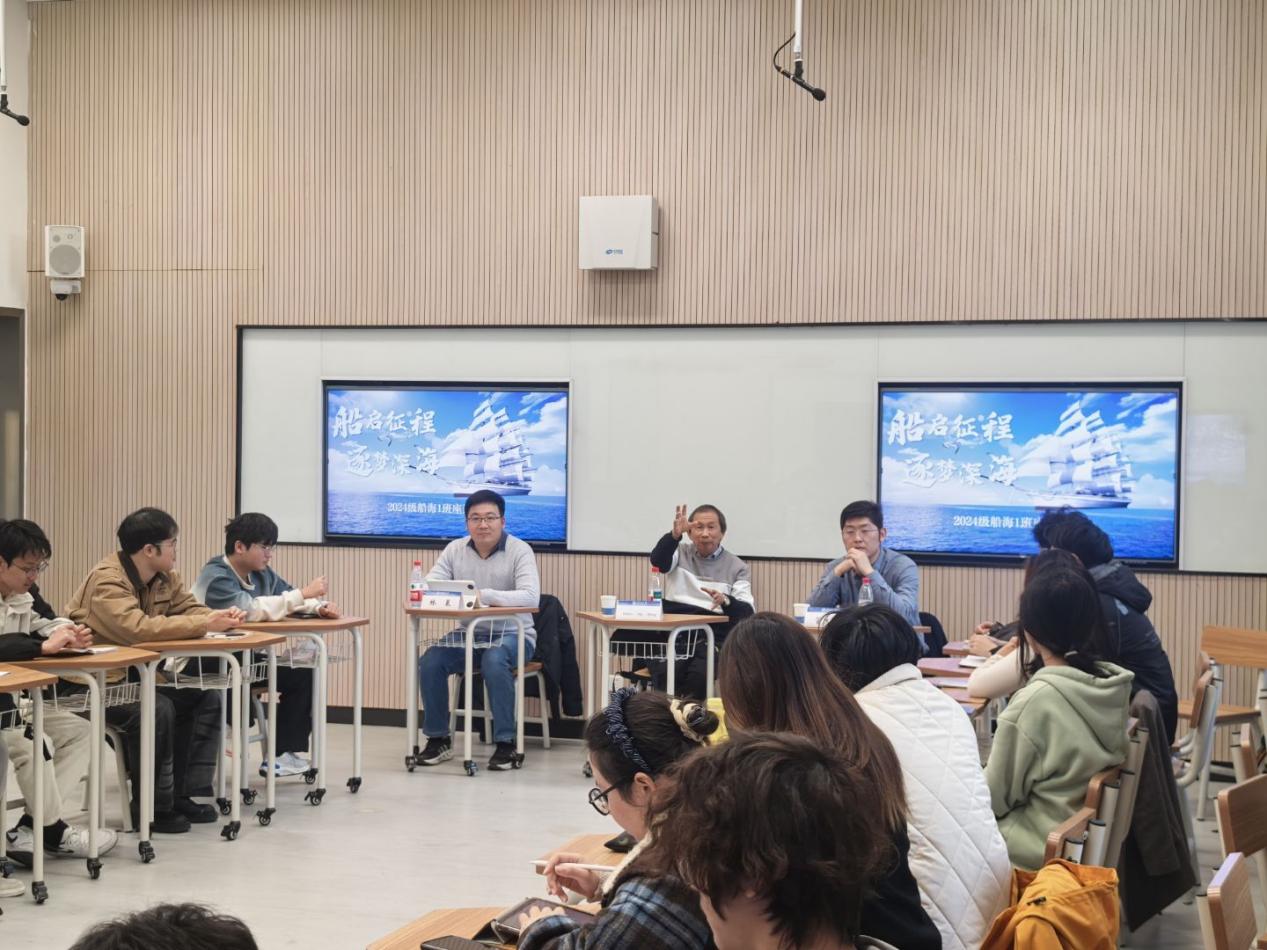 12月3日,领导干部联系学生座谈会暨学术报告会在常州校区2号楼E104举行,港航院副院长管大为、南洋理工大学Chiew Yee Meng教授、辅导员林晨和2024级船海1班全体同学参加。