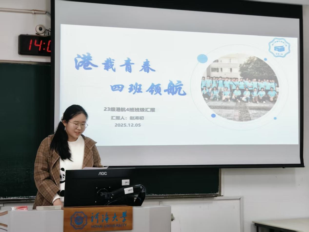 班长赵浠初结合班级概况、思想引领、学业科创、五育并举四个方面,汇报了班级同学在红色理论学习、学科竞赛成果、参与文体活动的亮眼表现。