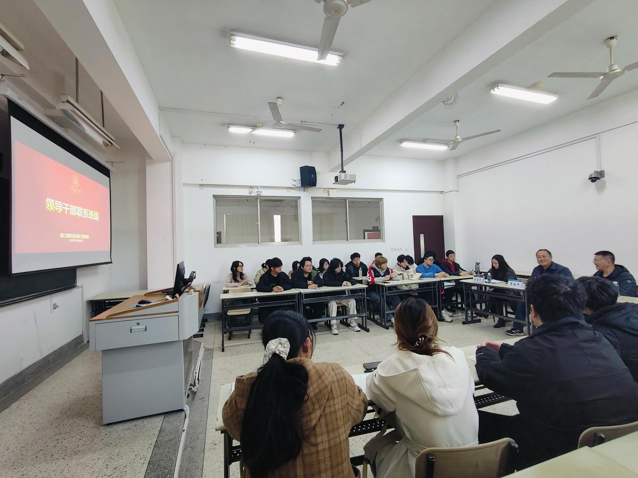 12月5日,领导干部联系班级座谈会在西康路校区闻天馆406举行,校党委巡察工作办公室主任曹继平、2023级港航4班班导师孙阳、辅导员廖芳艺以及2023级港航4班全体成员参加。